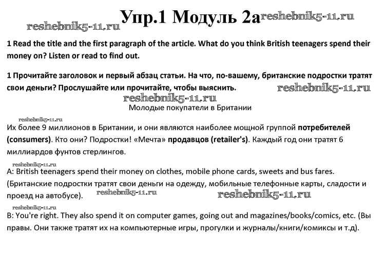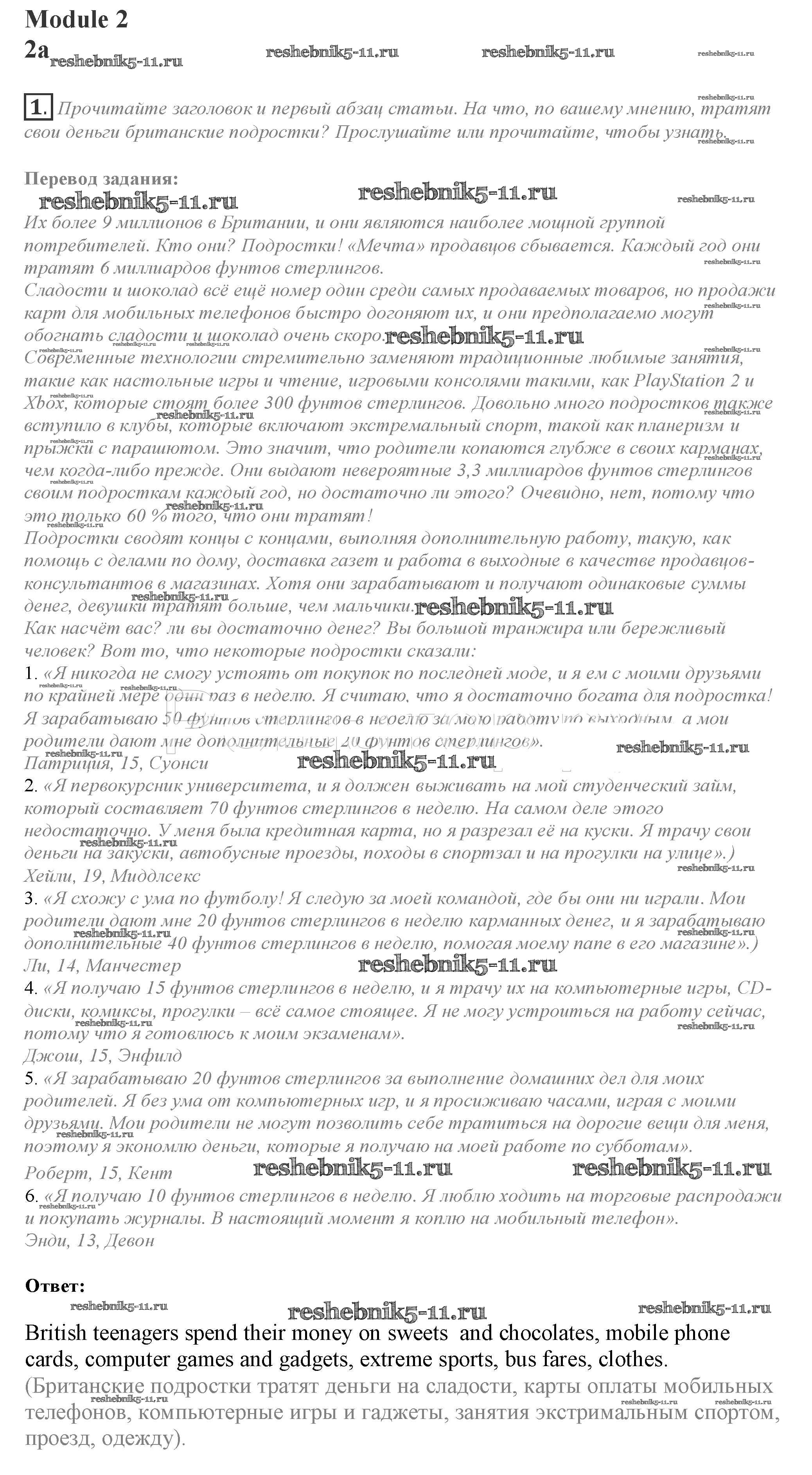 Готовая домашняя работа с ответами по Английскому языку за 10 класс Афанасьева, Дули, Михеева, Оби, Эванс Учебник Spotlight Просвещение 2015 ФГОС - Часть 2a 1
