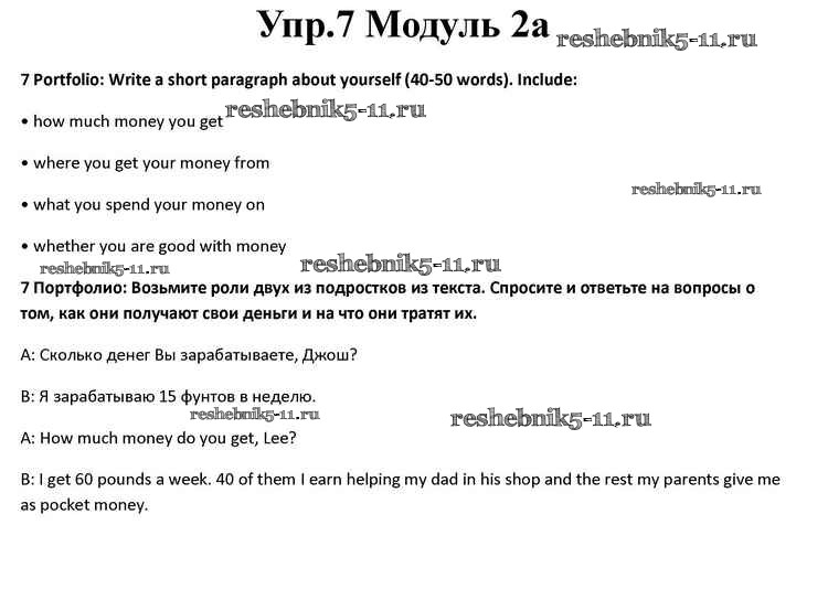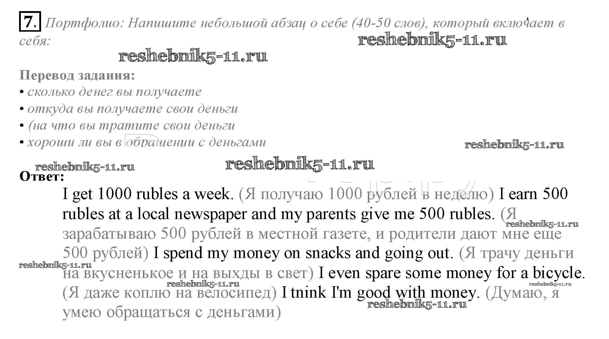 Готовая домашняя работа с ответами по Английскому языку за 10 класс Афанасьева, Дули, Михеева, Оби, Эванс Учебник Spotlight Просвещение 2015 ФГОС - Часть 2a 7