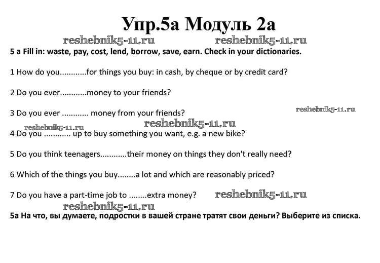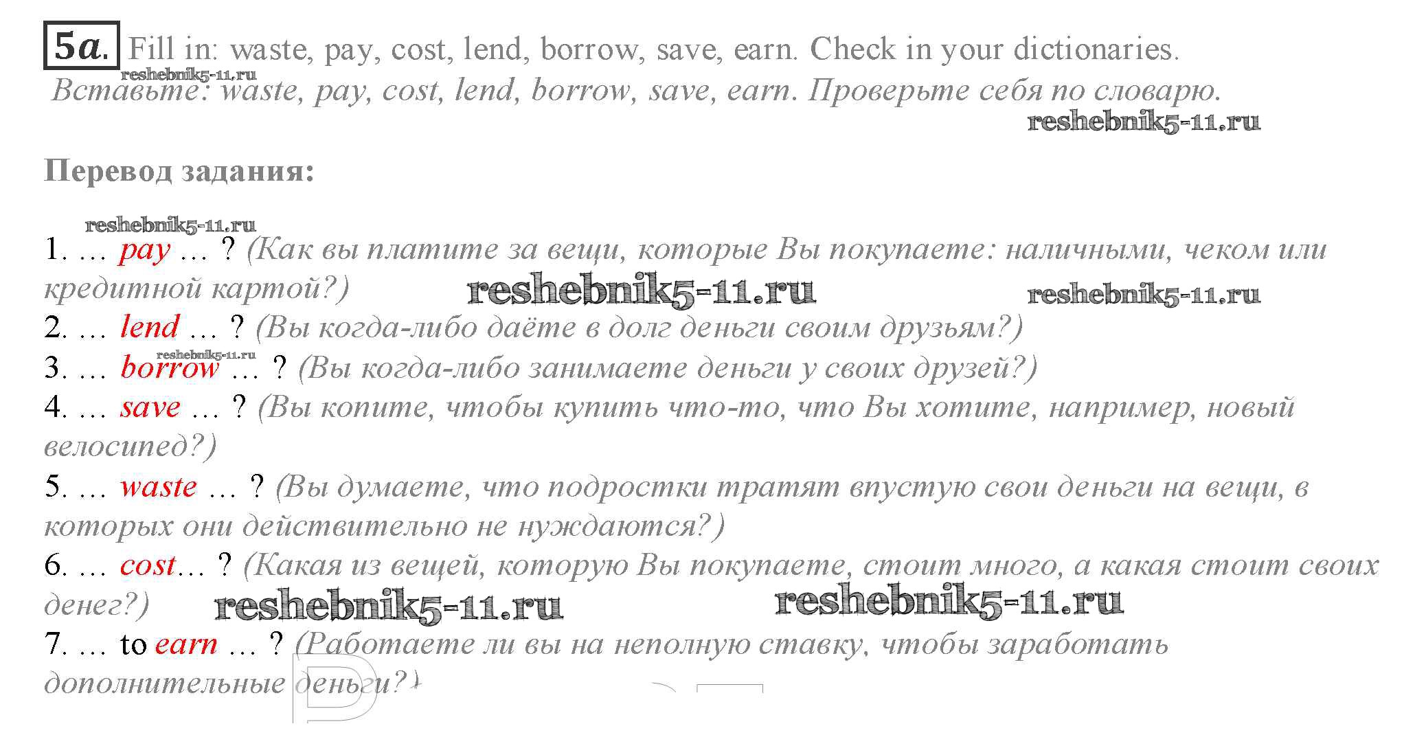 Готовая домашняя работа с ответами по Английскому языку за 10 класс Афанасьева, Дули, Михеева, Оби, Эванс Учебник Spotlight Просвещение 2015 ФГОС - Часть 2a 5a
