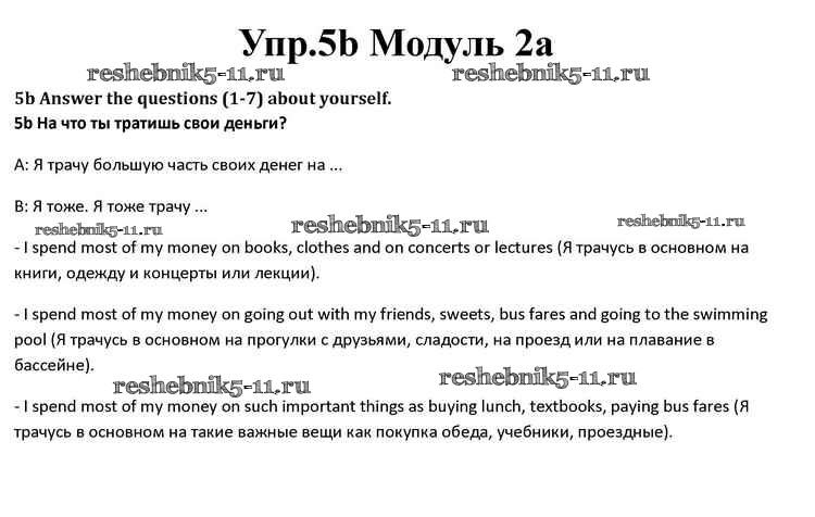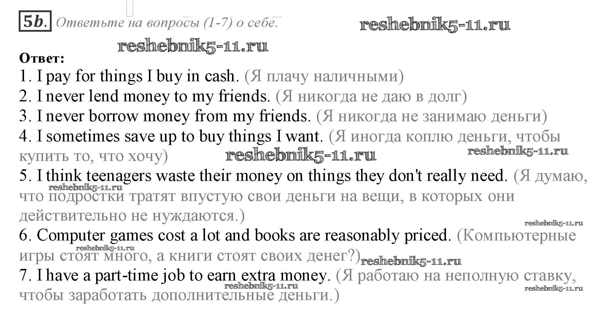 Готовая домашняя работа с ответами по Английскому языку за 10 класс Афанасьева, Дули, Михеева, Оби, Эванс Учебник Spotlight Просвещение 2015 ФГОС - Часть 2a 5b