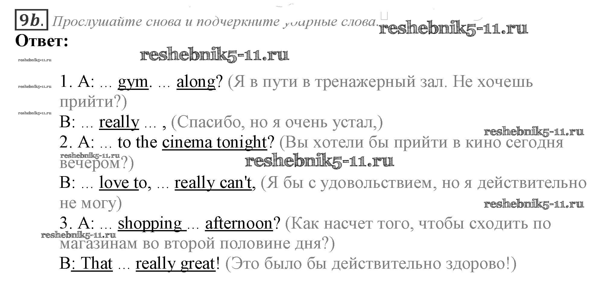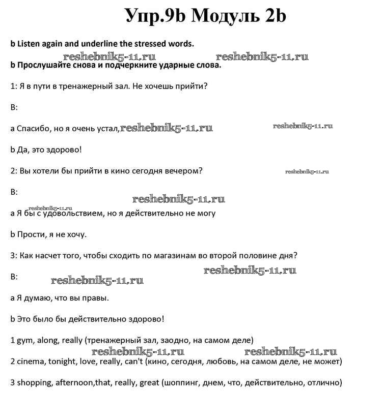 Готовая домашняя работа с ответами по Английскому языку за 10 класс Афанасьева, Дули, Михеева, Оби, Эванс Учебник Spotlight Просвещение 2015 ФГОС - Часть 2b 9b
