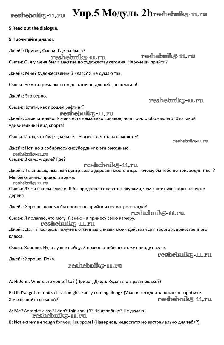 Готовая домашняя работа с ответами по Английскому языку за 10 класс Афанасьева, Дули, Михеева, Оби, Эванс Учебник Spotlight Просвещение 2015 ФГОС - Часть 2b 5