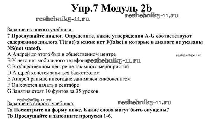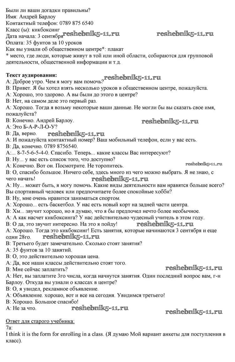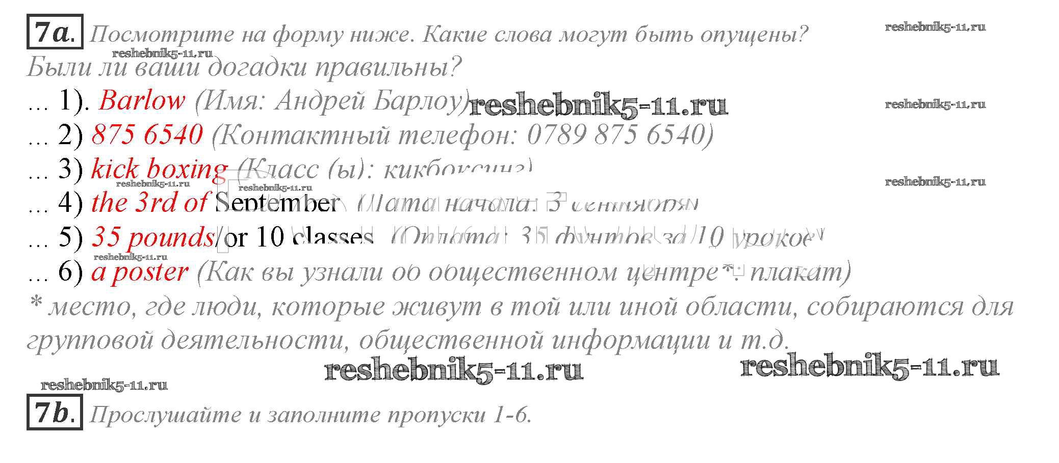 Готовая домашняя работа с ответами по Английскому языку за 10 класс Афанасьева, Дули, Михеева, Оби, Эванс Учебник Spotlight Просвещение 2015 ФГОС - Часть 2b 7