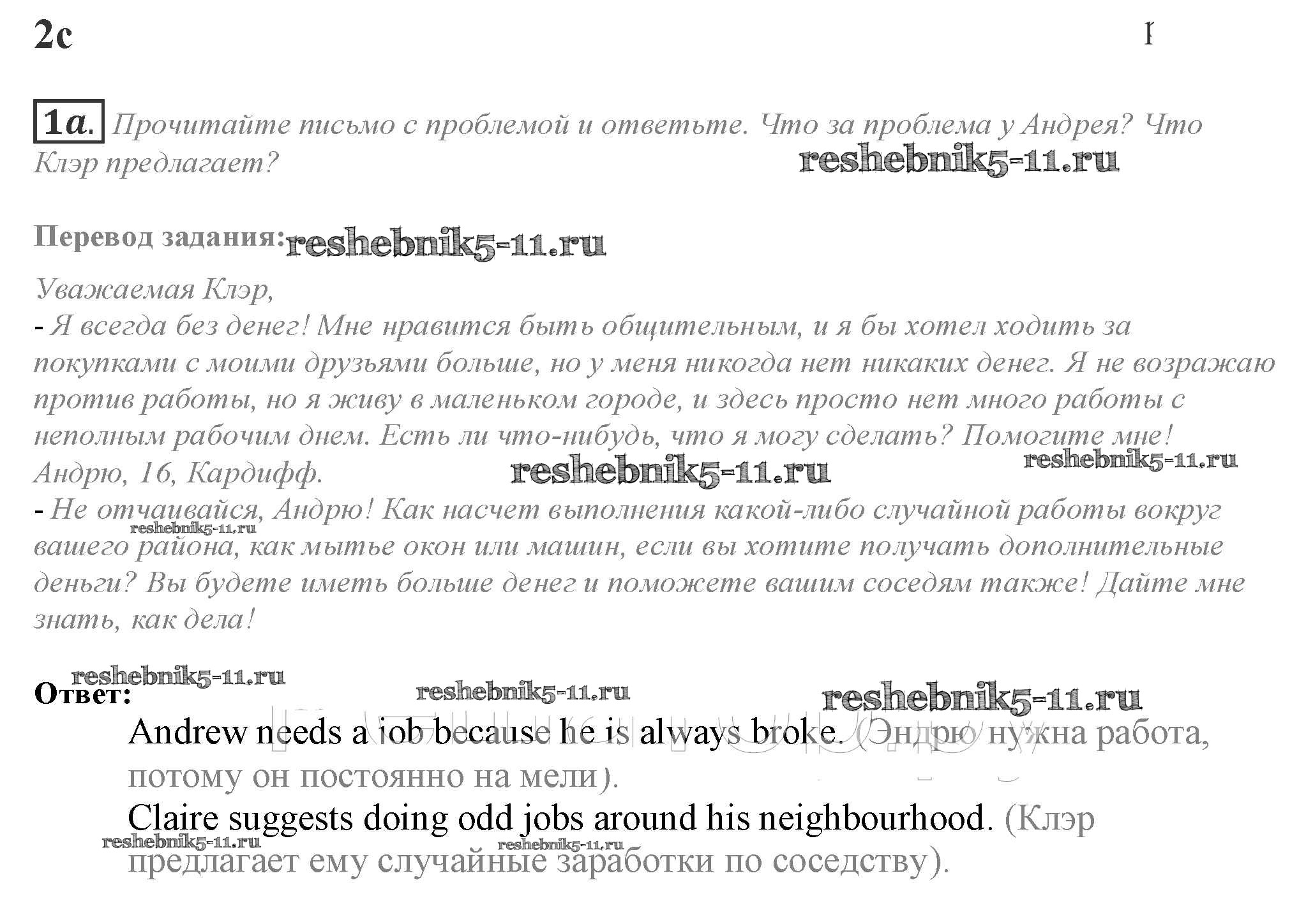 Готовая домашняя работа с ответами по Английскому языку за 10 класс Афанасьева, Дули, Михеева, Оби, Эванс Учебник Spotlight Просвещение 2015 ФГОС - Часть 2c 1a