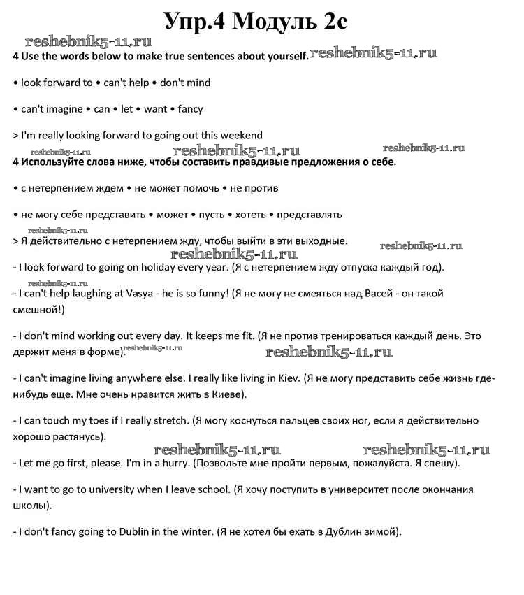 Готовая домашняя работа с ответами по Английскому языку за 10 класс Афанасьева, Дули, Михеева, Оби, Эванс Учебник Spotlight Просвещение 2015 ФГОС - Часть 2c 4
