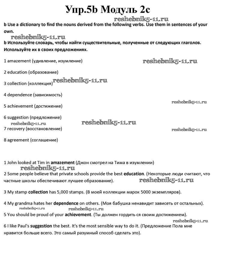 Готовая домашняя работа с ответами по Английскому языку за 10 класс Афанасьева, Дули, Михеева, Оби, Эванс Учебник Spotlight Просвещение 2015 ФГОС - Часть 2c 5b