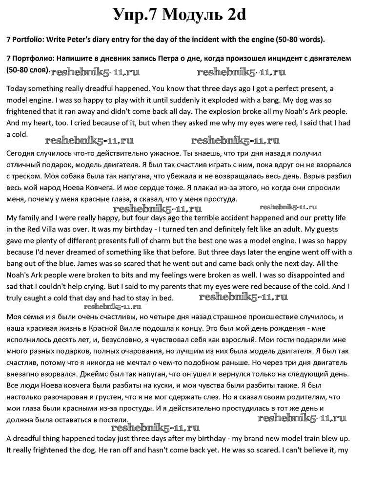 Готовая домашняя работа с ответами по Английскому языку за 10 класс Афанасьева, Дули, Михеева, Оби, Эванс Учебник Spotlight Просвещение 2015 ФГОС - Часть 2d 7