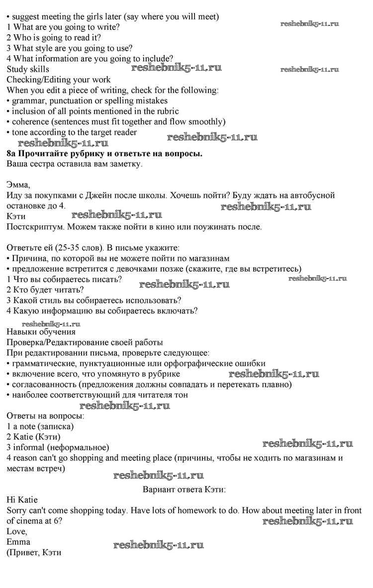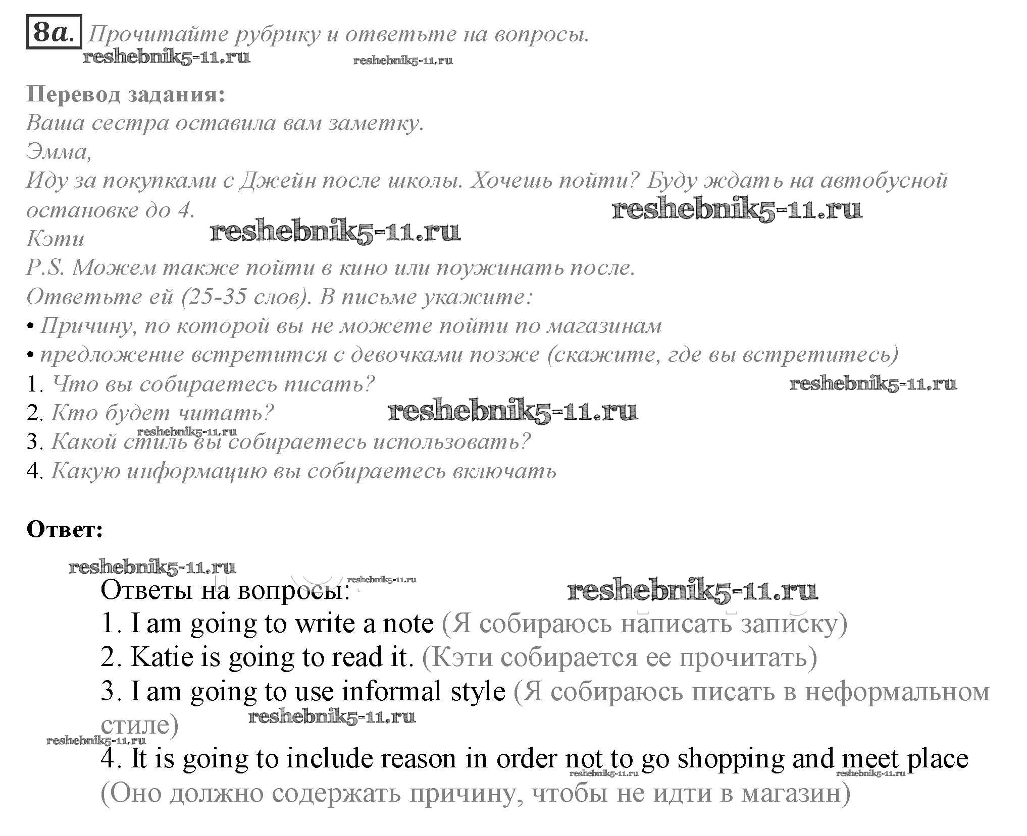 Готовая домашняя работа с ответами по Английскому языку за 10 класс Афанасьева, Дули, Михеева, Оби, Эванс Учебник Spotlight Просвещение 2015 ФГОС - Часть 2e 8a