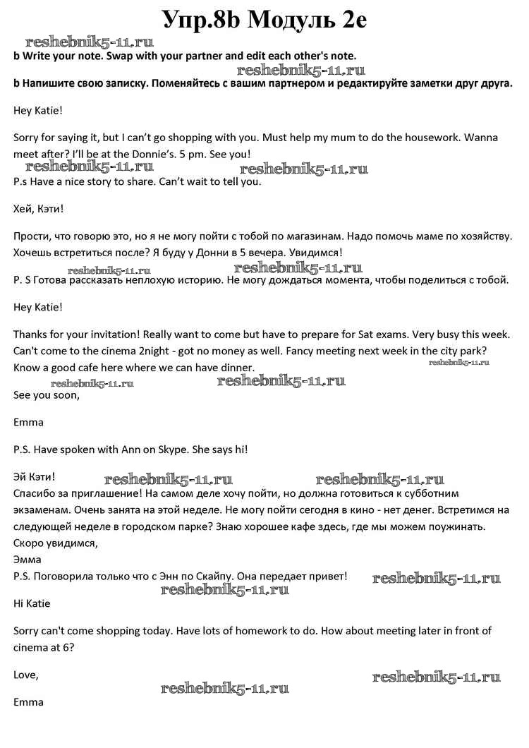 Готовая домашняя работа с ответами по Английскому языку за 10 класс Афанасьева, Дули, Михеева, Оби, Эванс Учебник Spotlight Просвещение 2015 ФГОС - Часть 2e 8b