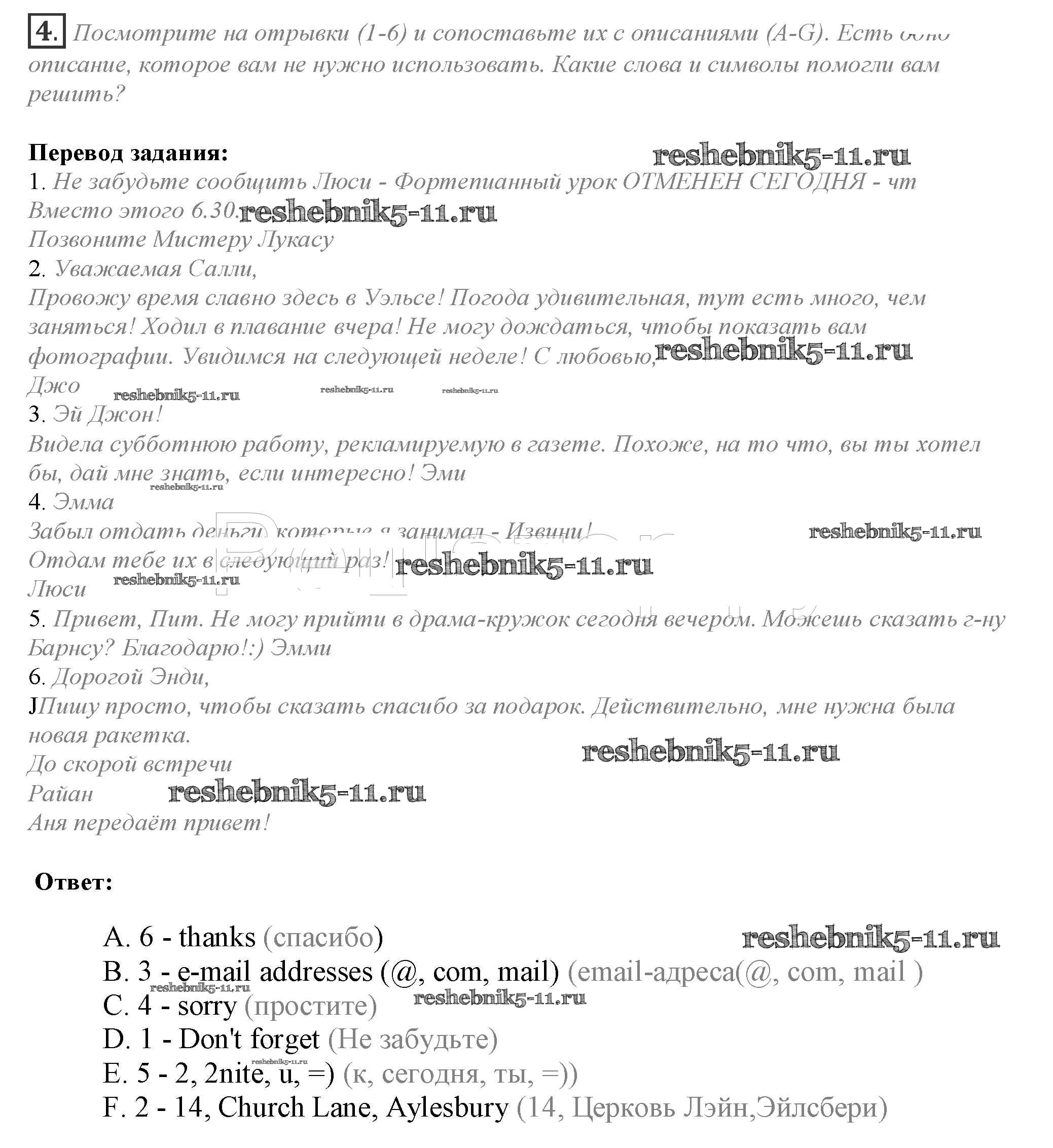 Готовая домашняя работа с ответами по Английскому языку за 10 класс Афанасьева, Дули, Михеева, Оби, Эванс Учебник Spotlight Просвещение 2015 ФГОС - Часть 2e 4