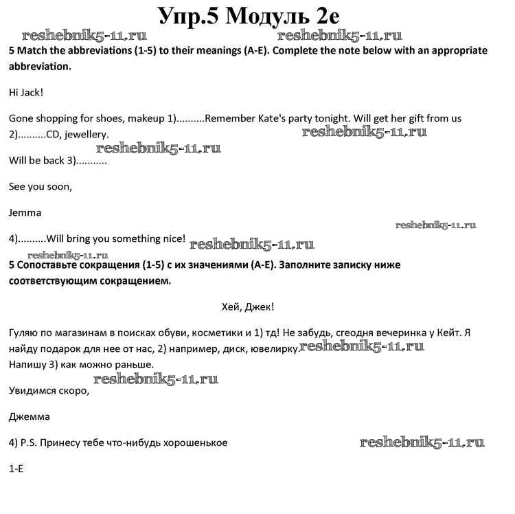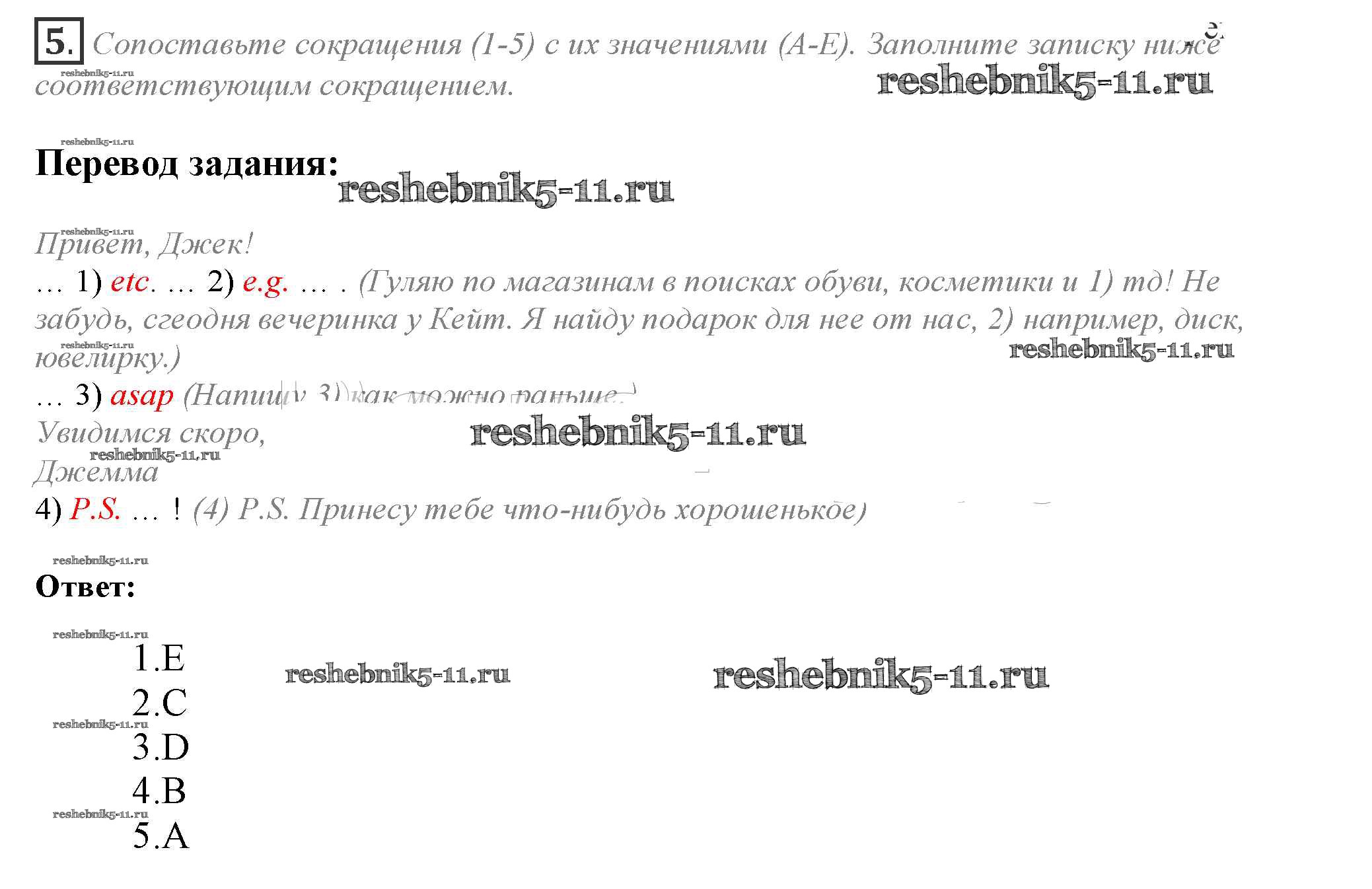 Готовая домашняя работа с ответами по Английскому языку за 10 класс Афанасьева, Дули, Михеева, Оби, Эванс Учебник Spotlight Просвещение 2015 ФГОС - Часть 2e 5