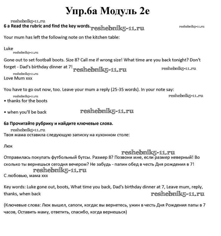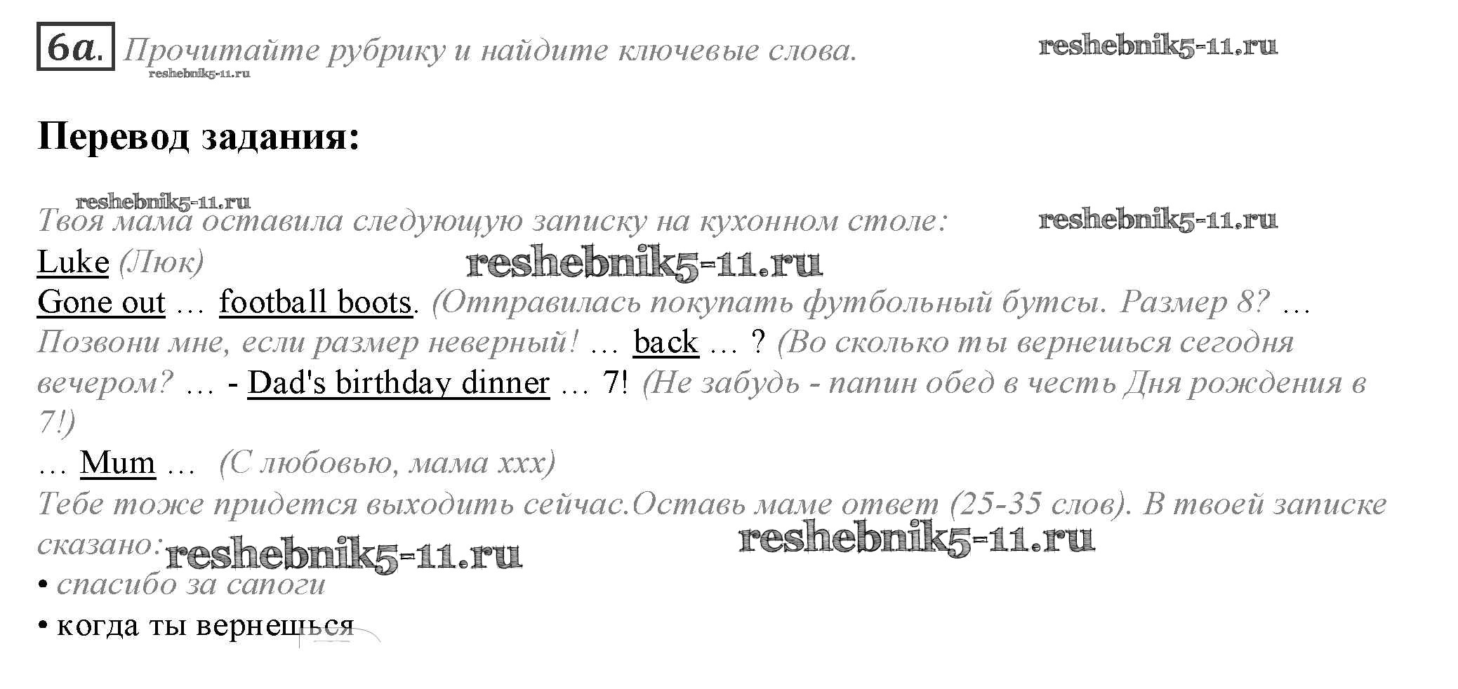 Готовая домашняя работа с ответами по Английскому языку за 10 класс Афанасьева, Дули, Михеева, Оби, Эванс Учебник Spotlight Просвещение 2015 ФГОС - Часть 2e 6a