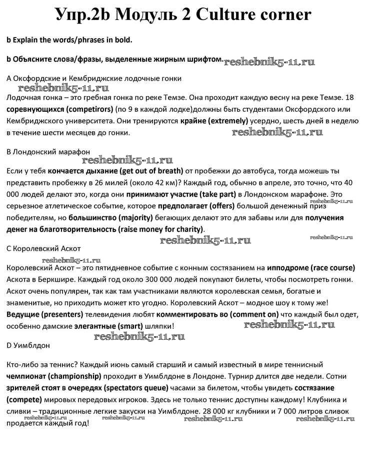 Английский язык за 10 класс Афанасьева Учебник Spotlight Просвещение Culture corner 2b