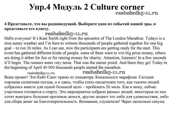 Готовая домашняя работа с ответами по Английскому языку за 10 класс Афанасьева, Дули, Михеева, Оби, Эванс Учебник Spotlight Просвещение 2015 ФГОС - Culture corner 4