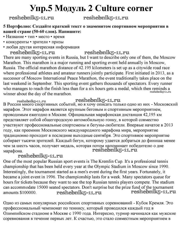 Готовая домашняя работа с ответами по Английскому языку за 10 класс Афанасьева, Дули, Михеева, Оби, Эванс Учебник Spotlight Просвещение 2015 ФГОС - Culture corner 5
