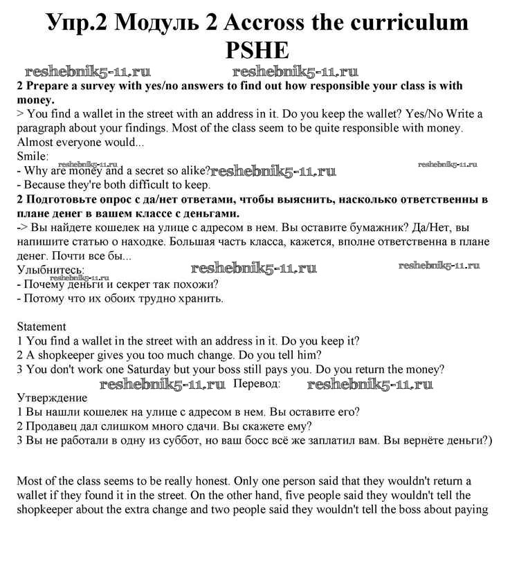 Решебник 2 / module 2 / accross the curriculum PSHE / 2