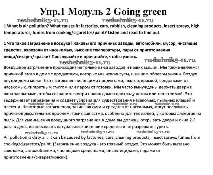 Готовая домашняя работа с ответами по Английскому языку за 10 класс Афанасьева, Дули, Михеева, Оби, Эванс Учебник Spotlight Просвещение 2015 ФГОС - Going green 1