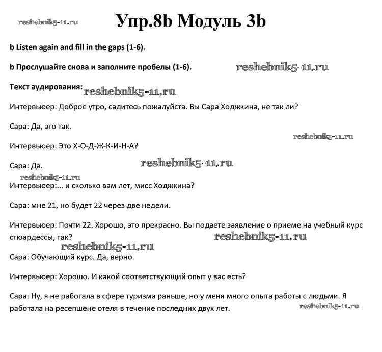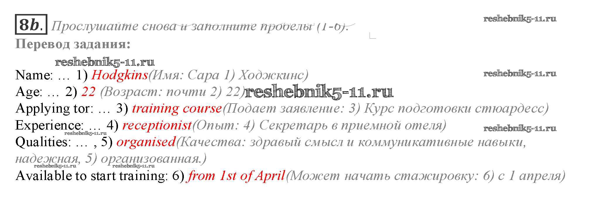 Готовая домашняя работа с ответами по Английскому языку за 10 класс Афанасьева, Дули, Михеева, Оби, Эванс Учебник Spotlight Просвещение 2015 ФГОС - Часть 3b 8b
