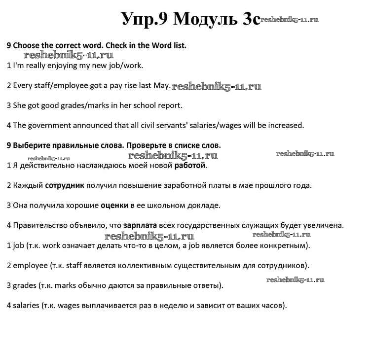 Готовая домашняя работа с ответами по Английскому языку за 10 класс Афанасьева, Дули, Михеева, Оби, Эванс Учебник Spotlight Просвещение 2015 ФГОС - Часть 3c 9