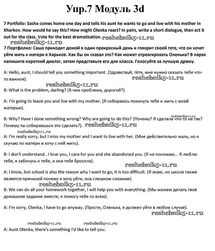 Готовая домашняя работа с ответами по Английскому языку за 10 класс Афанасьева, Дули, Михеева, Оби, Эванс Учебник Spotlight Просвещение 2015 ФГОС - Часть 3d 7