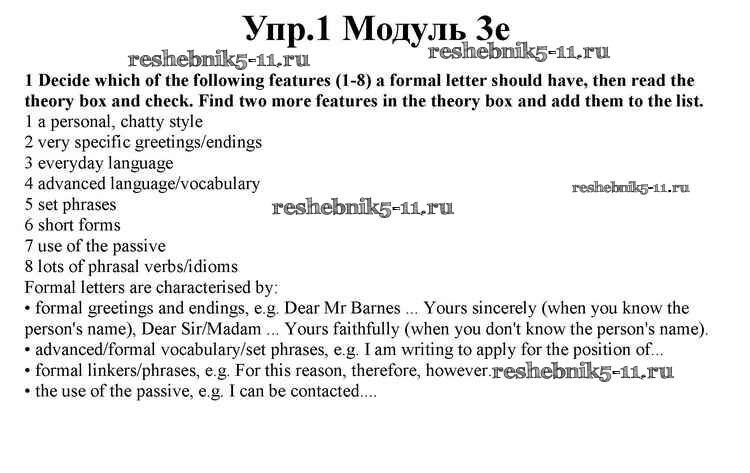 Готовая домашняя работа с ответами по Английскому языку за 10 класс Афанасьева, Дули, Михеева, Оби, Эванс Учебник Spotlight Просвещение 2015 ФГОС - Часть 3e 1