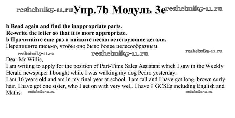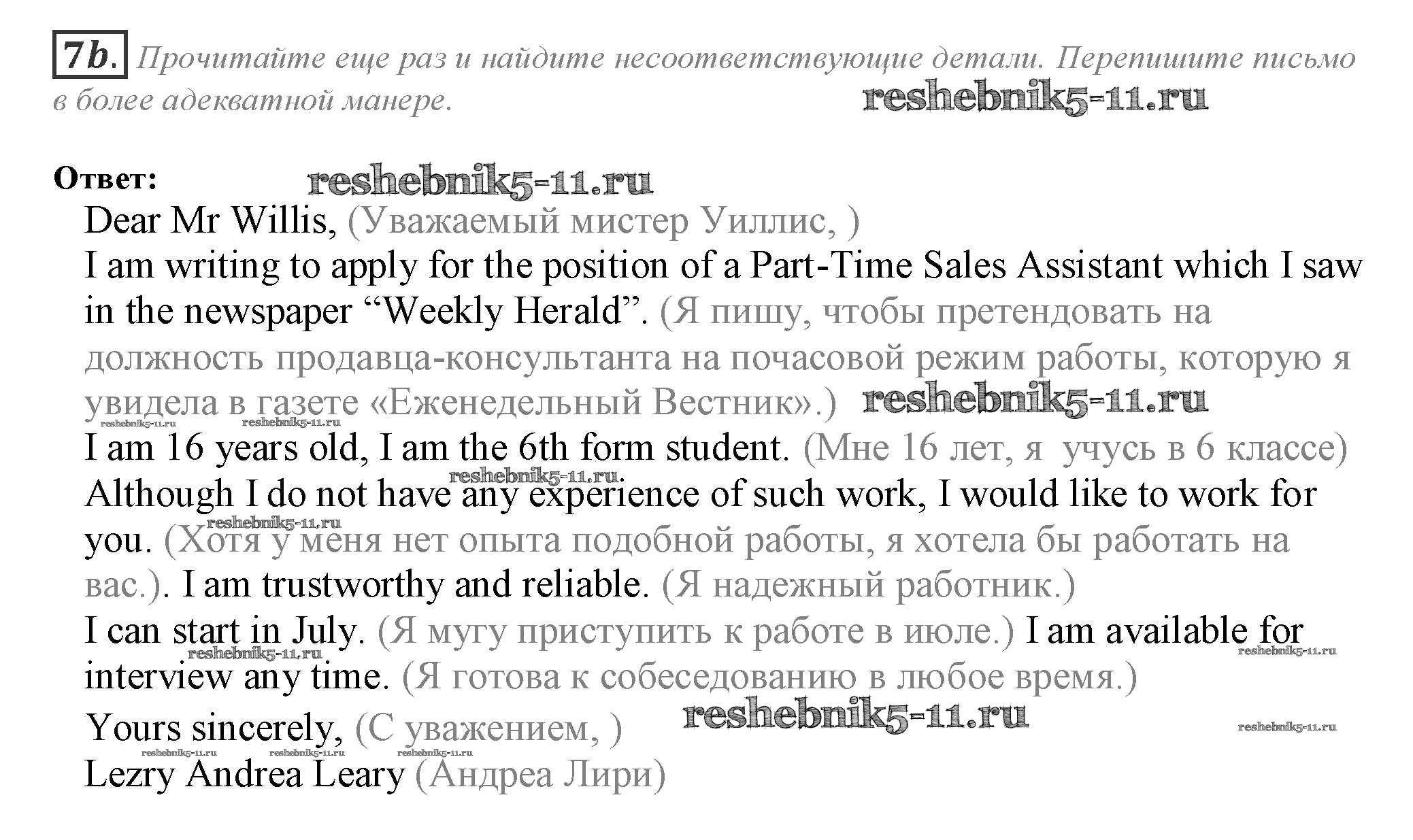 Готовая домашняя работа с ответами по Английскому языку за 10 класс Афанасьева, Дули, Михеева, Оби, Эванс Учебник Spotlight Просвещение 2015 ФГОС - Часть 3e 7b