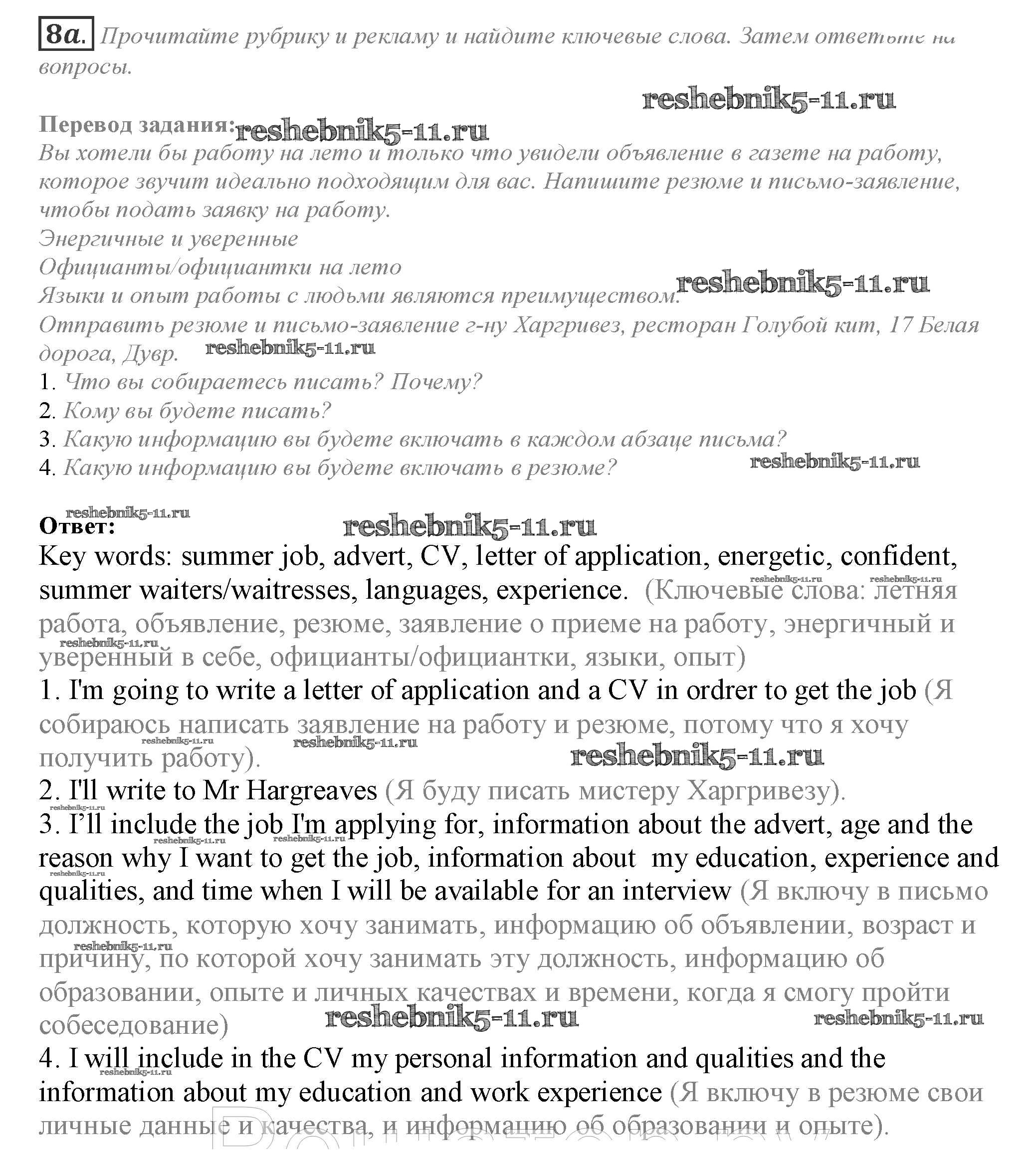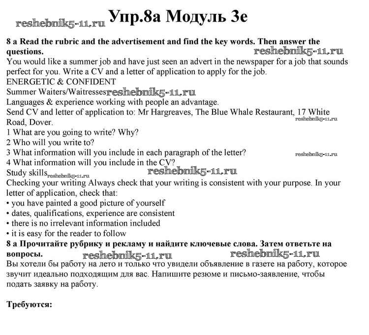 Готовая домашняя работа с ответами по Английскому языку за 10 класс Афанасьева, Дули, Михеева, Оби, Эванс Учебник Spotlight Просвещение 2015 ФГОС - Часть 3e 8a