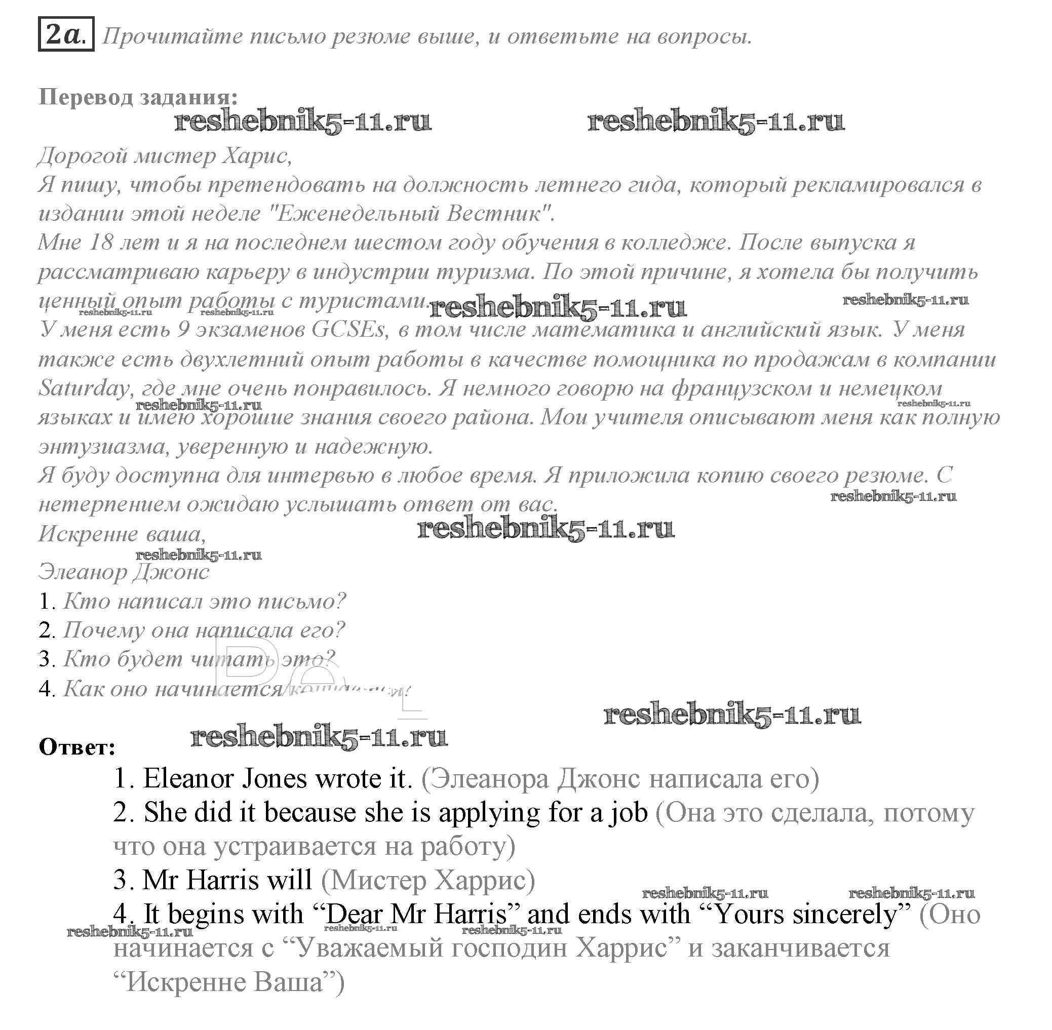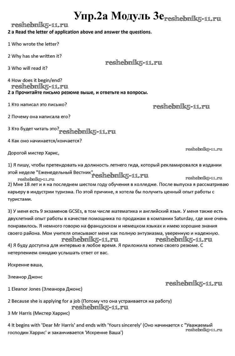 Готовая домашняя работа с ответами по Английскому языку за 10 класс Афанасьева, Дули, Михеева, Оби, Эванс Учебник Spotlight Просвещение 2015 ФГОС - Часть 3e 2a