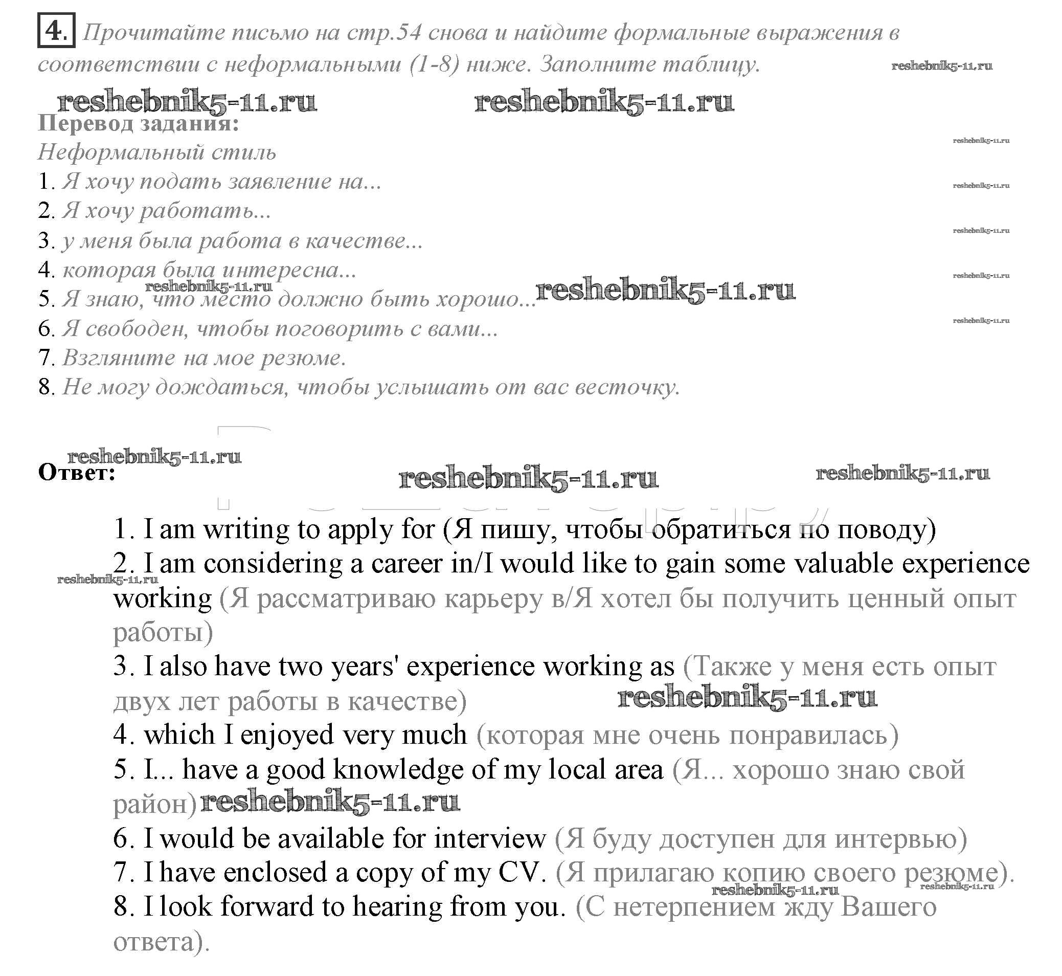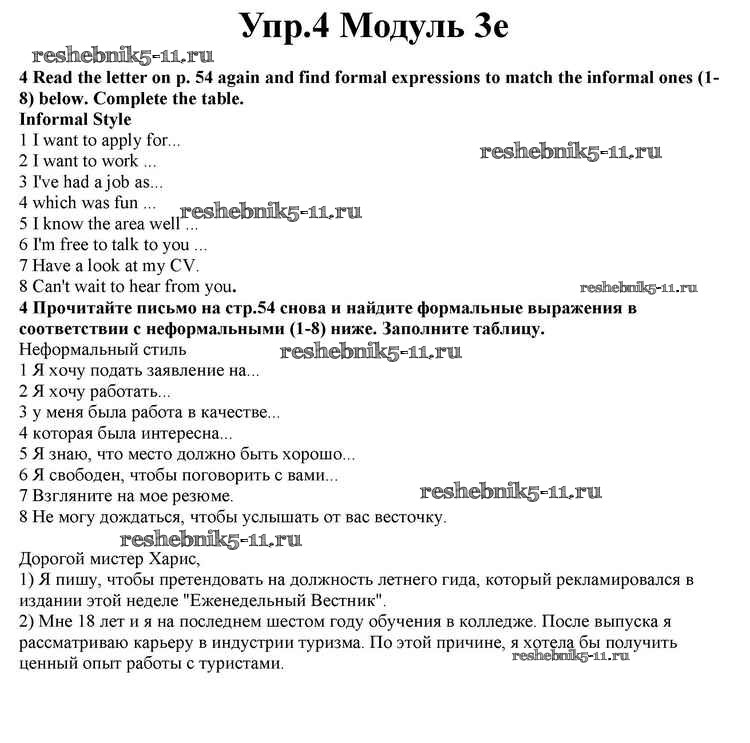 Готовая домашняя работа с ответами по Английскому языку за 10 класс Афанасьева, Дули, Михеева, Оби, Эванс Учебник Spotlight Просвещение 2015 ФГОС - Часть 3e 4