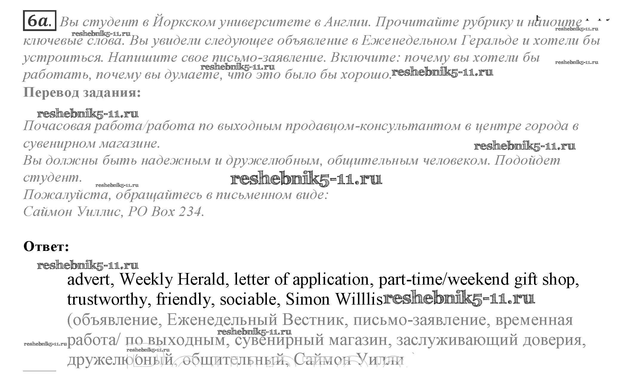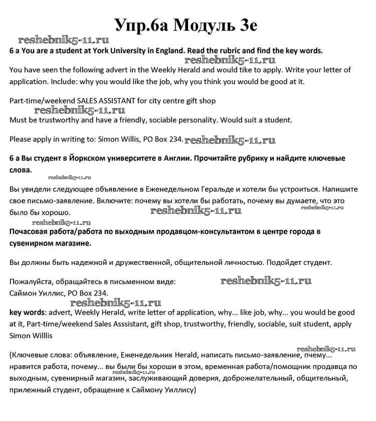 Готовая домашняя работа с ответами по Английскому языку за 10 класс Афанасьева, Дули, Михеева, Оби, Эванс Учебник Spotlight Просвещение 2015 ФГОС - Часть 3e 6a