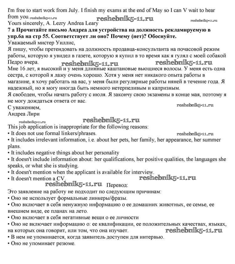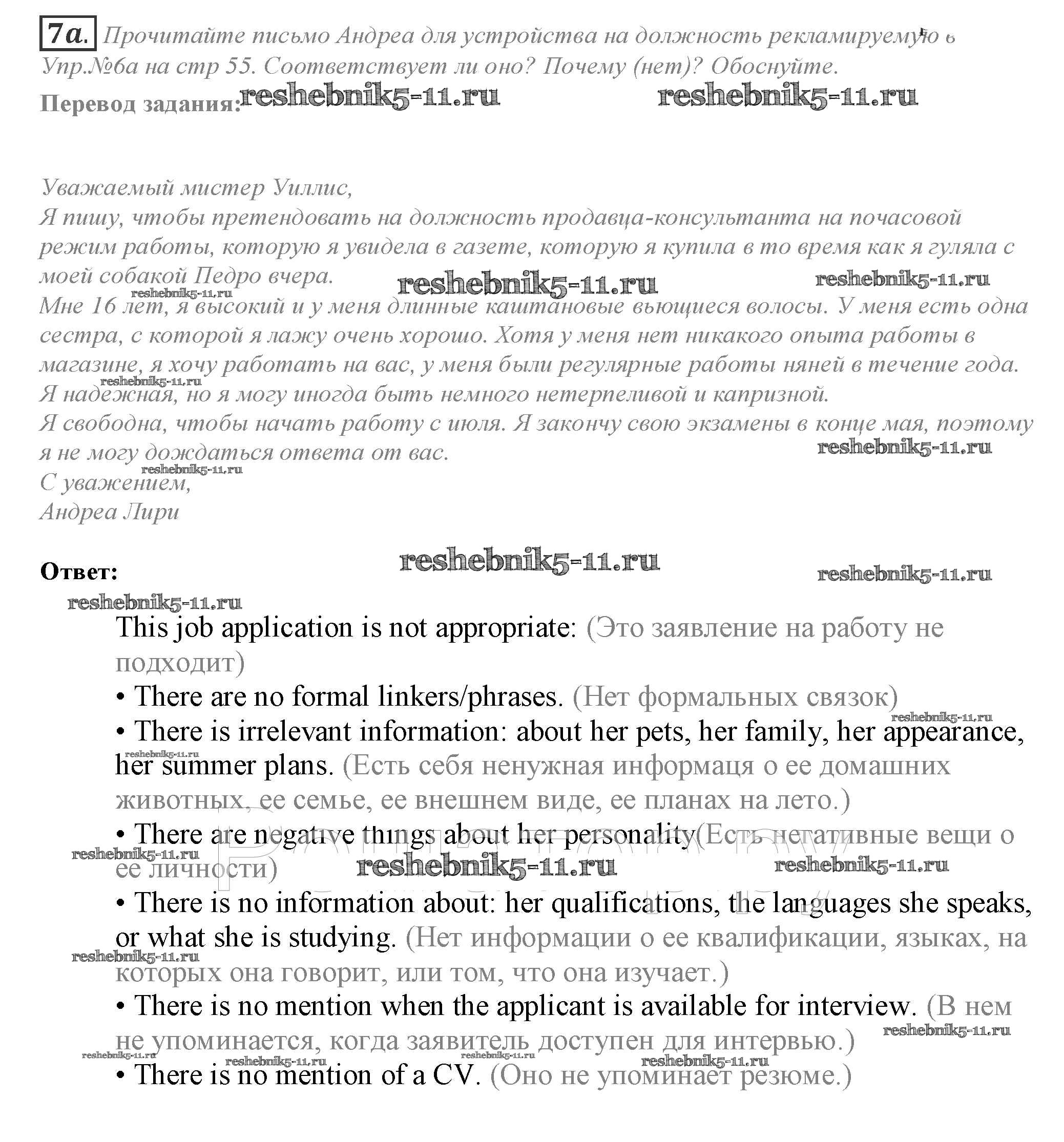 Готовая домашняя работа с ответами по Английскому языку за 10 класс Афанасьева, Дули, Михеева, Оби, Эванс Учебник Spotlight Просвещение 2015 ФГОС - Часть 3e 7a