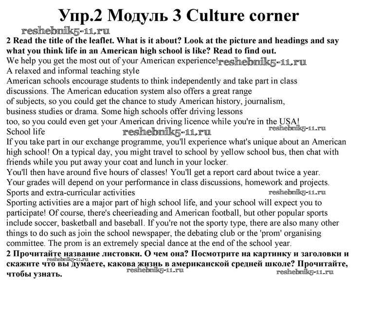 Английский язык за 10 класс Афанасьева Учебник Spotlight Просвещение culture corner 2