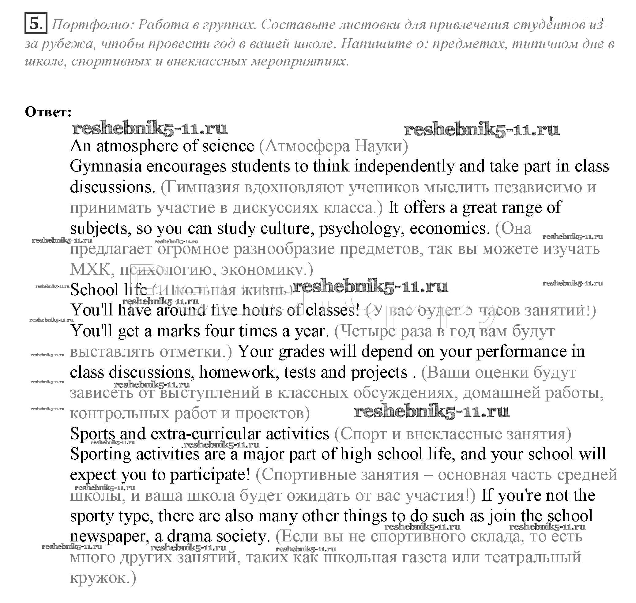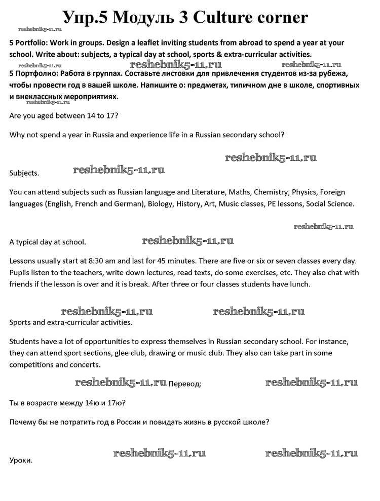 Готовая домашняя работа с ответами по Английскому языку за 10 класс Афанасьева, Дули, Михеева, Оби, Эванс Учебник Spotlight Просвещение 2015 ФГОС - Culture corner 5