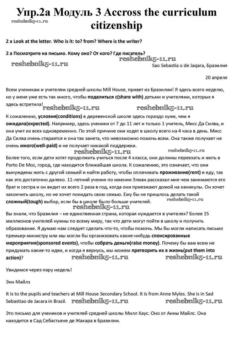 Готовая домашняя работа с ответами по Английскому языку за 10 класс Афанасьева, Дули, Михеева, Оби, Эванс Учебник Spotlight Просвещение 2015 ФГОС - Accross the curriculum Citizenship 2a