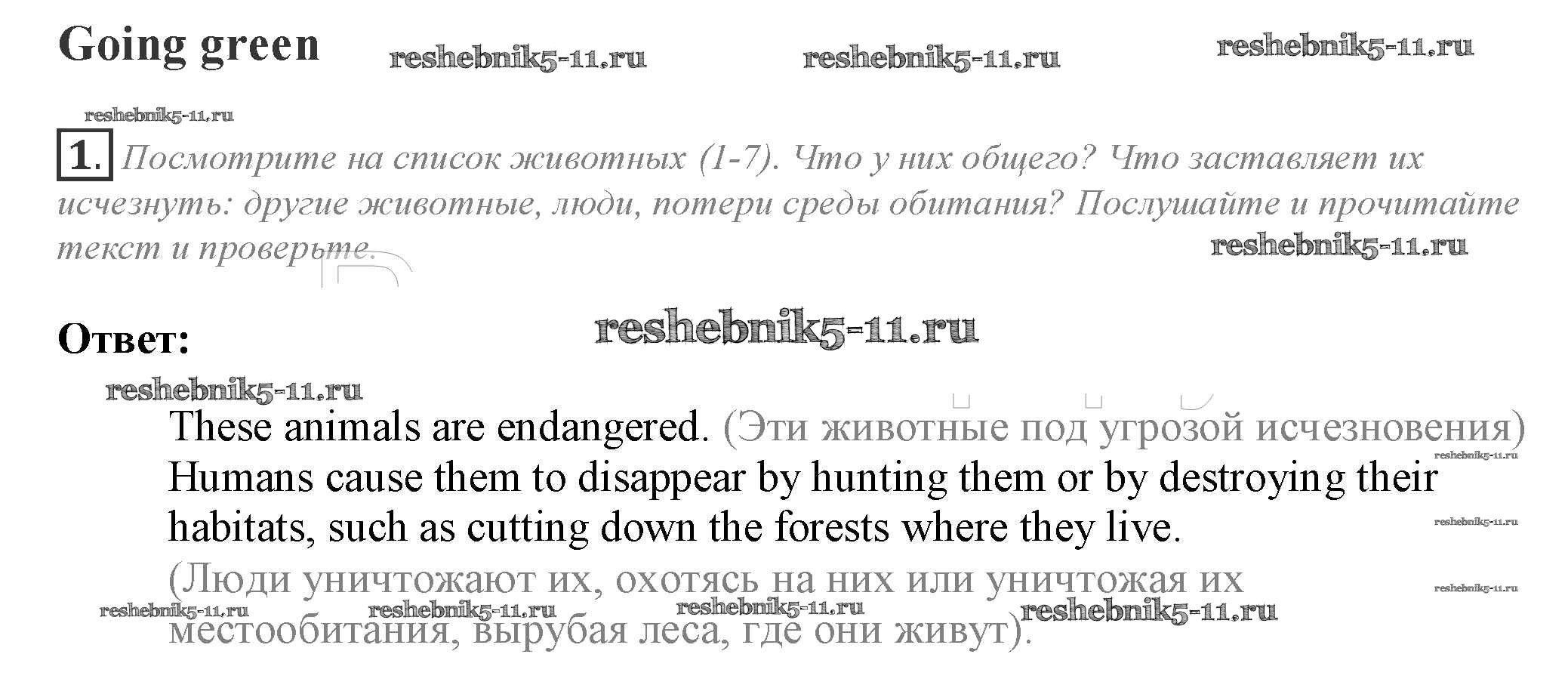 Готовая домашняя работа с ответами по Английскому языку за 10 класс Афанасьева, Дули, Михеева, Оби, Эванс Учебник Spotlight Просвещение 2015 ФГОС - Going green 1