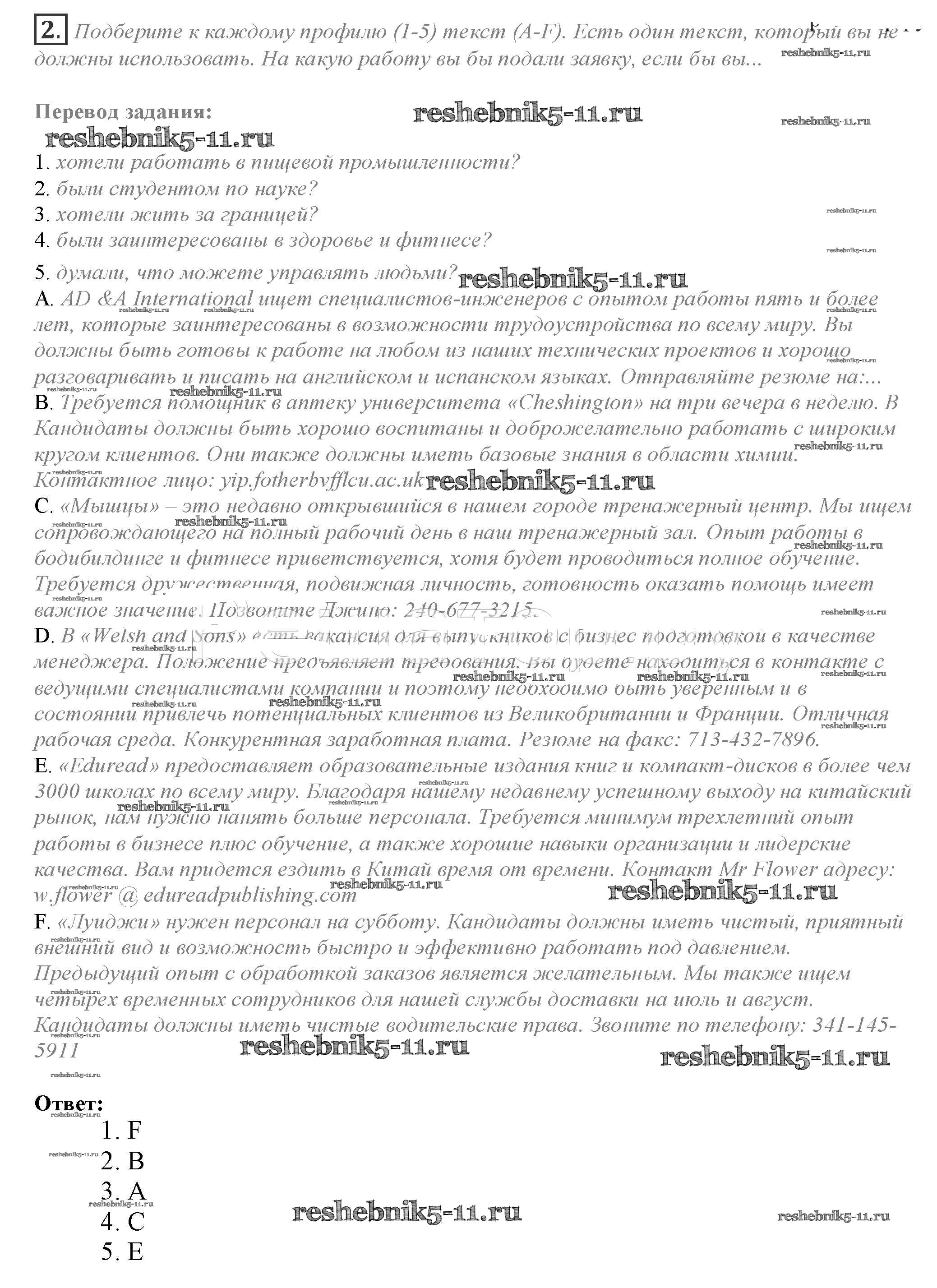 Готовая домашняя работа с ответами по Английскому языку за 10 класс Афанасьева, Дули, Михеева, Оби, Эванс Учебник Spotlight Просвещение 2015 ФГОС - Spotlight on Exams 2