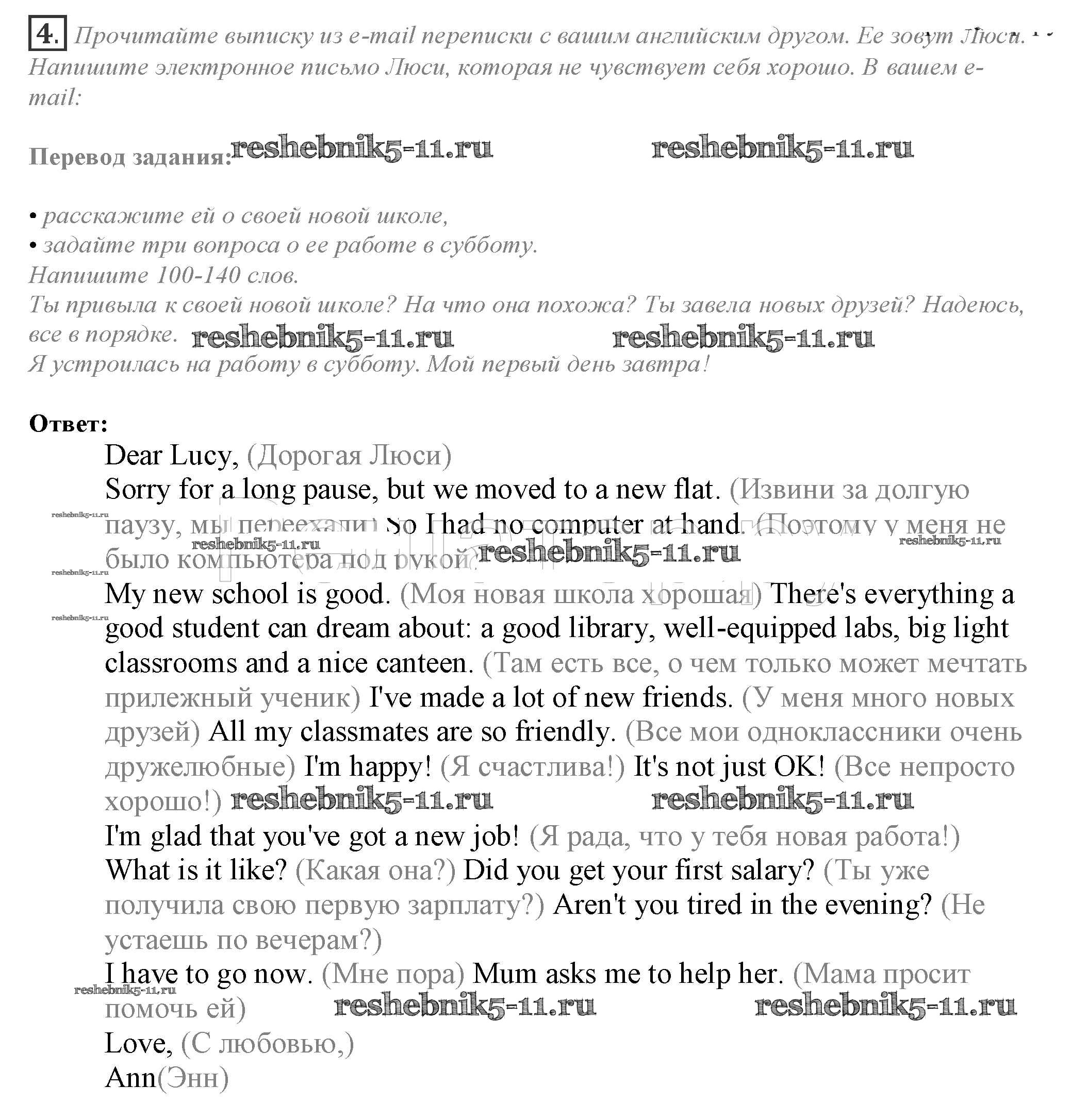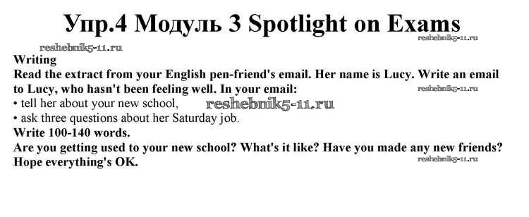 Готовая домашняя работа с ответами по Английскому языку за 10 класс Афанасьева, Дули, Михеева, Оби, Эванс Учебник Spotlight Просвещение 2015 ФГОС - Spotlight on Exams 4