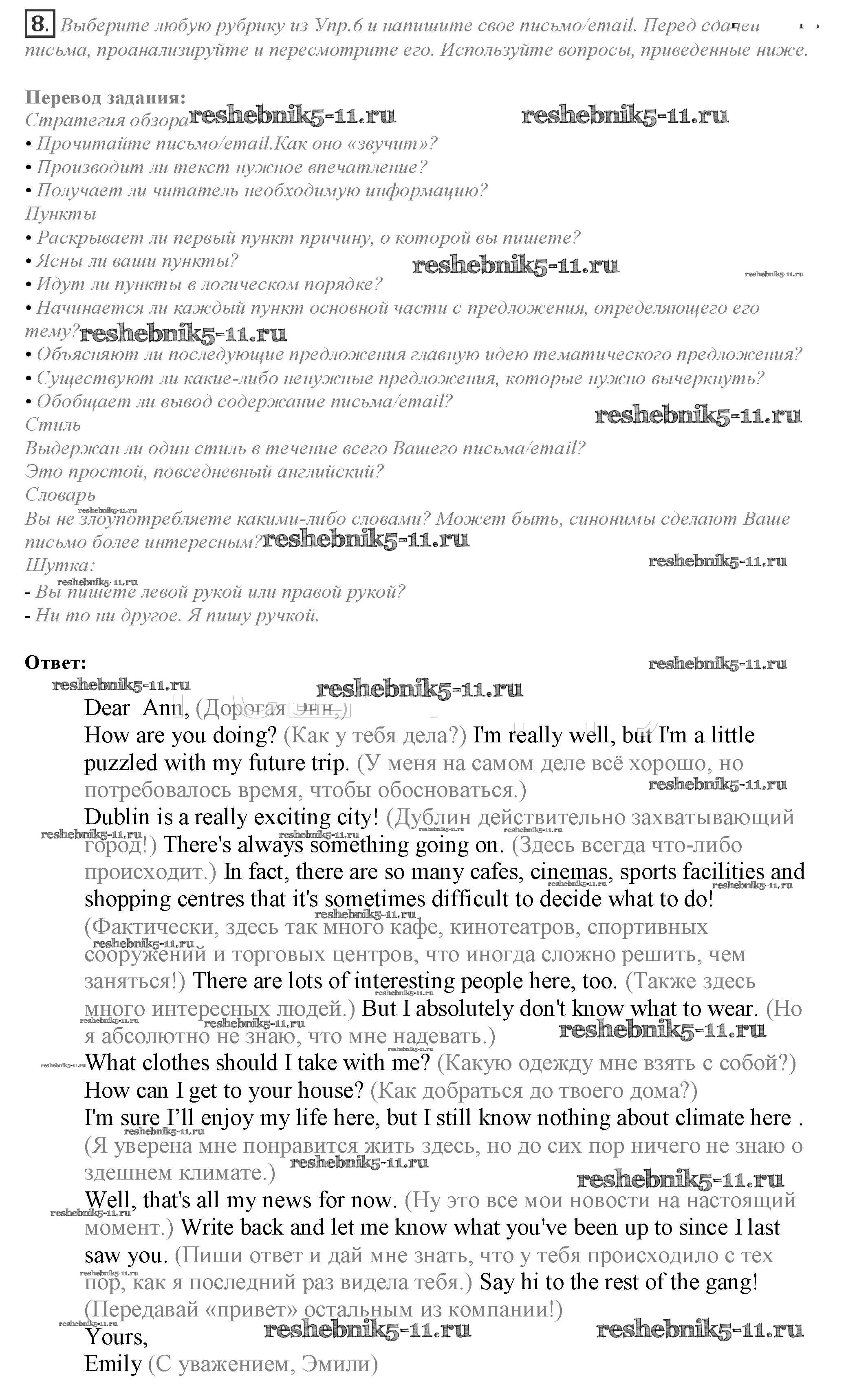 Готовая домашняя работа с ответами по Английскому языку за 10 класс Афанасьева, Дули, Михеева, Оби, Эванс Учебник Spotlight Просвещение 2015 ФГОС - Часть 1e 8