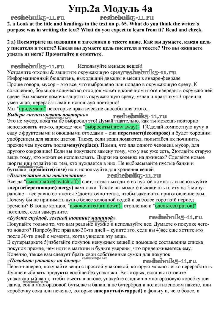 Готовая домашняя работа с ответами по Английскому языку за 10 класс Афанасьева, Дули, Михеева, Оби, Эванс Учебник Spotlight Просвещение 2015 ФГОС - Часть 4a 2a