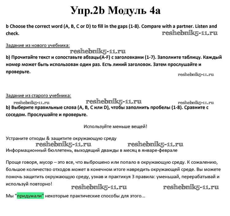Готовая домашняя работа с ответами по Английскому языку за 10 класс Афанасьева, Дули, Михеева, Оби, Эванс Учебник Spotlight Просвещение 2015 ФГОС - Часть 4a 2b