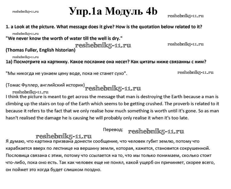 Готовая домашняя работа с ответами по Английскому языку за 10 класс Афанасьева, Дули, Михеева, Оби, Эванс Учебник Spotlight Просвещение 2015 ФГОС - Часть 4b 1a