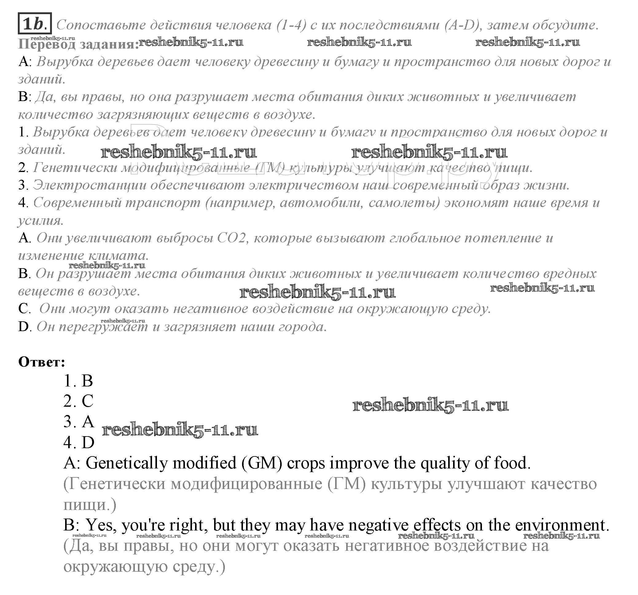 Готовая домашняя работа с ответами по Английскому языку за 10 класс Афанасьева, Дули, Михеева, Оби, Эванс Учебник Spotlight Просвещение 2015 ФГОС - Часть 4b 1b