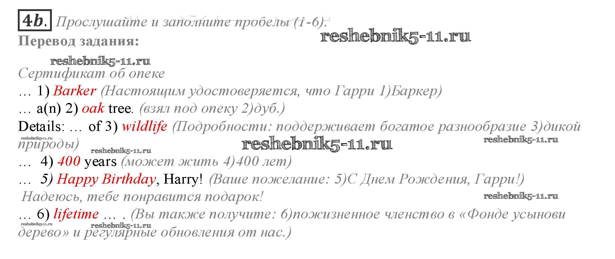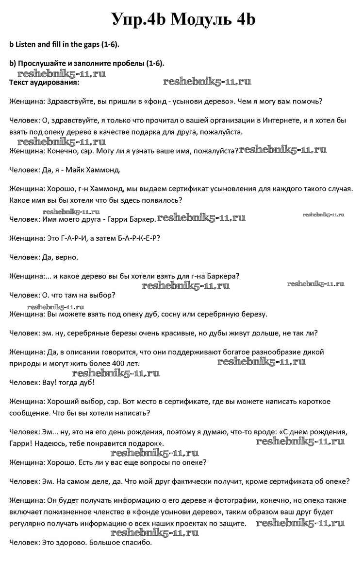 Готовая домашняя работа с ответами по Английскому языку за 10 класс Афанасьева, Дули, Михеева, Оби, Эванс Учебник Spotlight Просвещение 2015 ФГОС - Часть 4b 4b