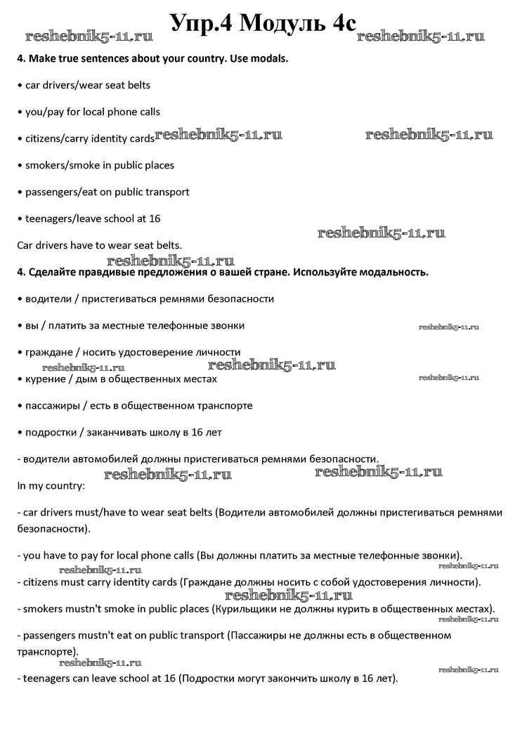 Готовая домашняя работа с ответами по Английскому языку за 10 класс Афанасьева, Дули, Михеева, Оби, Эванс Учебник Spotlight Просвещение 2015 ФГОС - Часть 4c 4