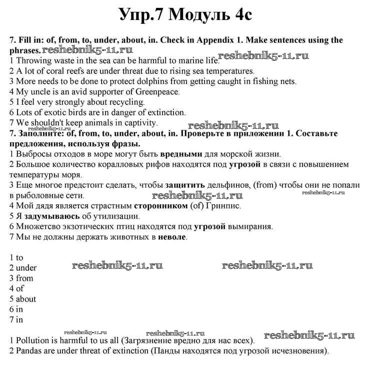 Готовая домашняя работа с ответами по Английскому языку за 10 класс Афанасьева, Дули, Михеева, Оби, Эванс Учебник Spotlight Просвещение 2015 ФГОС - Часть 4c 7