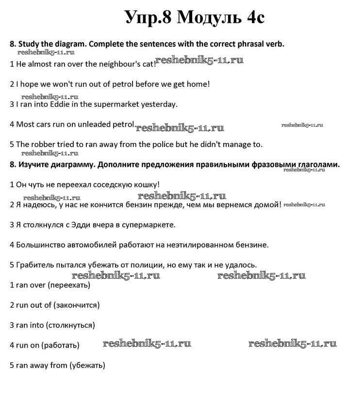 Готовая домашняя работа с ответами по Английскому языку за 10 класс Афанасьева, Дули, Михеева, Оби, Эванс Учебник Spotlight Просвещение 2015 ФГОС - Часть 4c 8