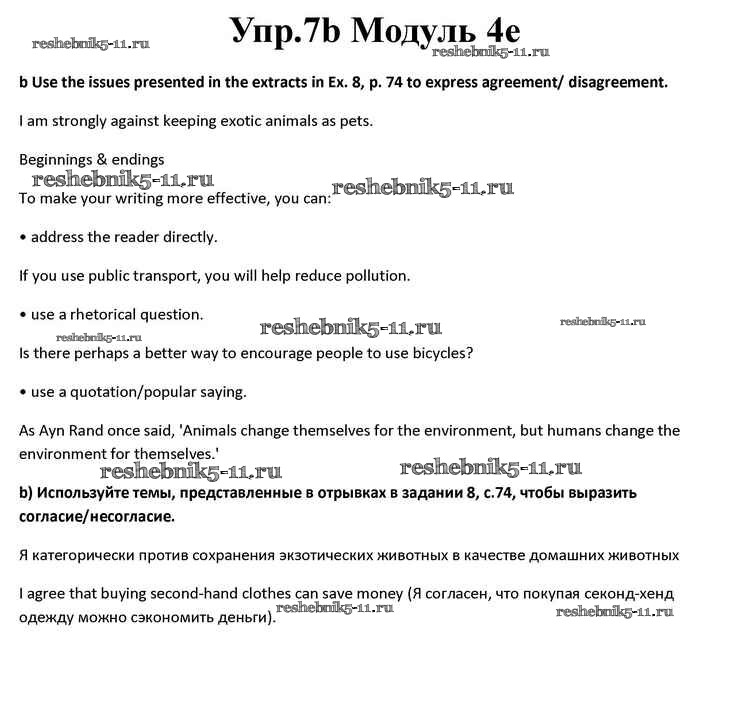 Готовая домашняя работа с ответами по Английскому языку за 10 класс Афанасьева, Дули, Михеева, Оби, Эванс Учебник Spotlight Просвещение 2015 ФГОС - Часть 4e 7b