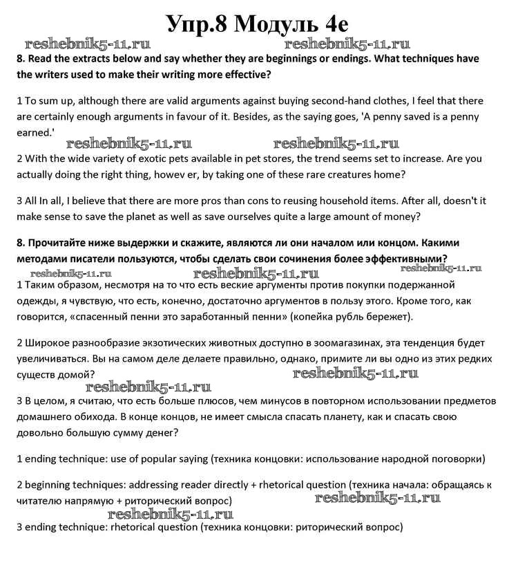 Готовая домашняя работа с ответами по Английскому языку за 10 класс Афанасьева, Дули, Михеева, Оби, Эванс Учебник Spotlight Просвещение 2015 ФГОС - Часть 4e 8