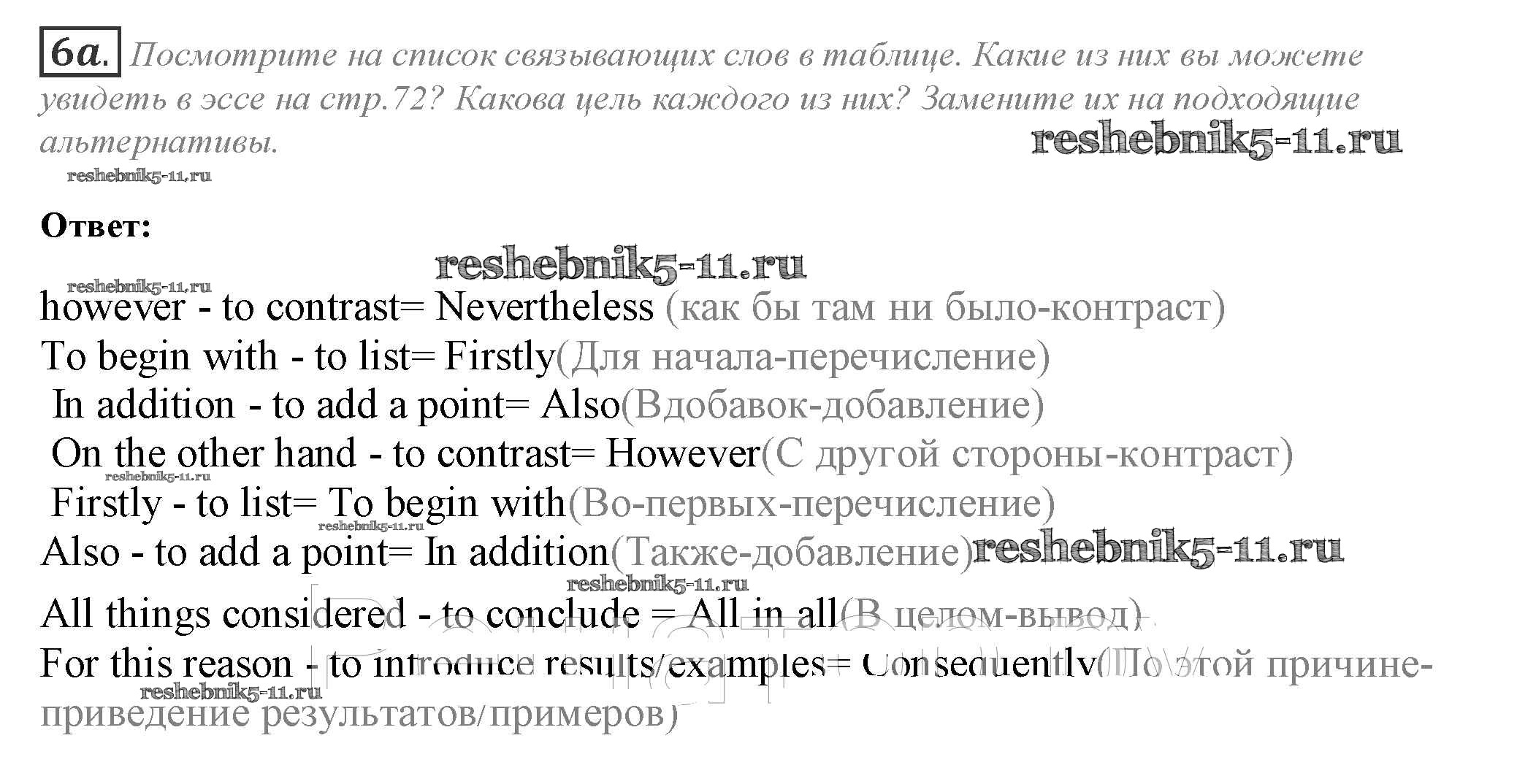 Готовая домашняя работа с ответами по Английскому языку за 10 класс Афанасьева, Дули, Михеева, Оби, Эванс Учебник Spotlight Просвещение 2015 ФГОС - Часть 4e 6a