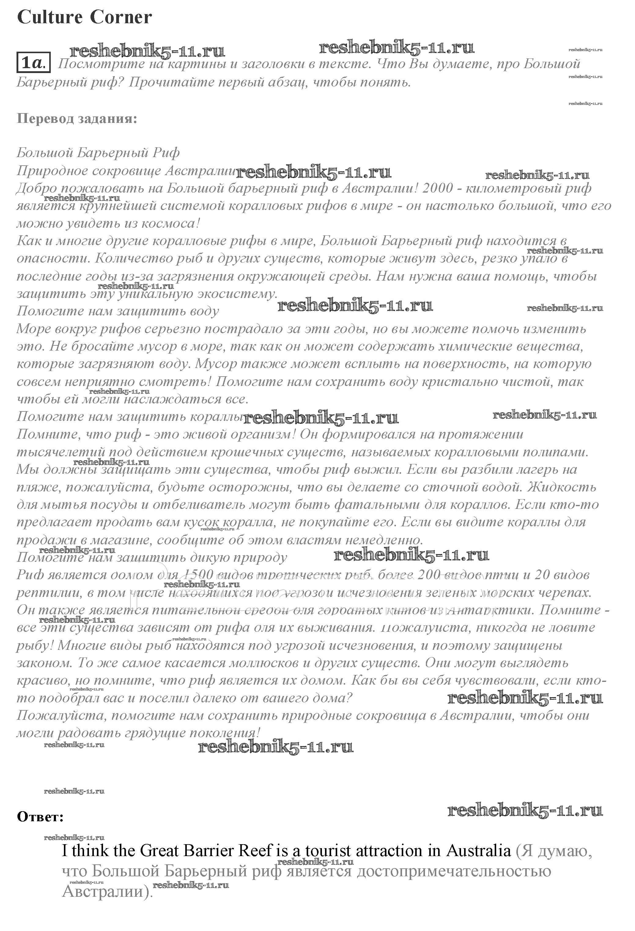 Английский язык за 10 класс Афанасьева Учебник Spotlight Просвещение culture corner 1a